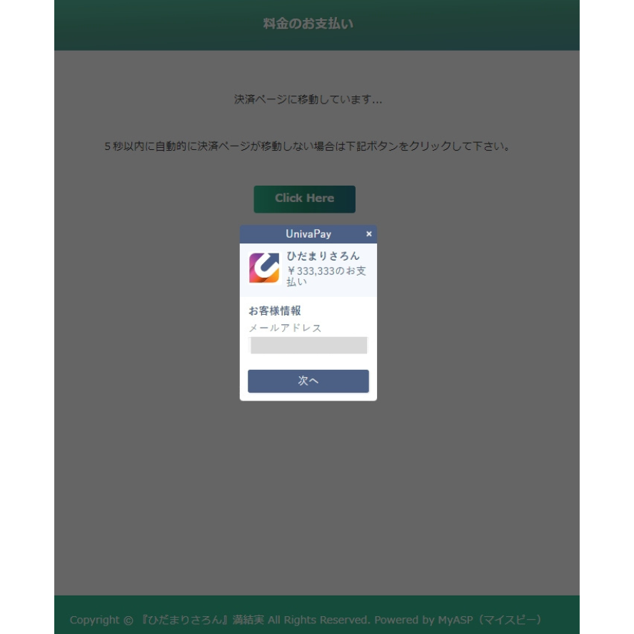 3.UnivaPayの決済ページに移動します。 メールアドレス確認して『次へ』をクリック。