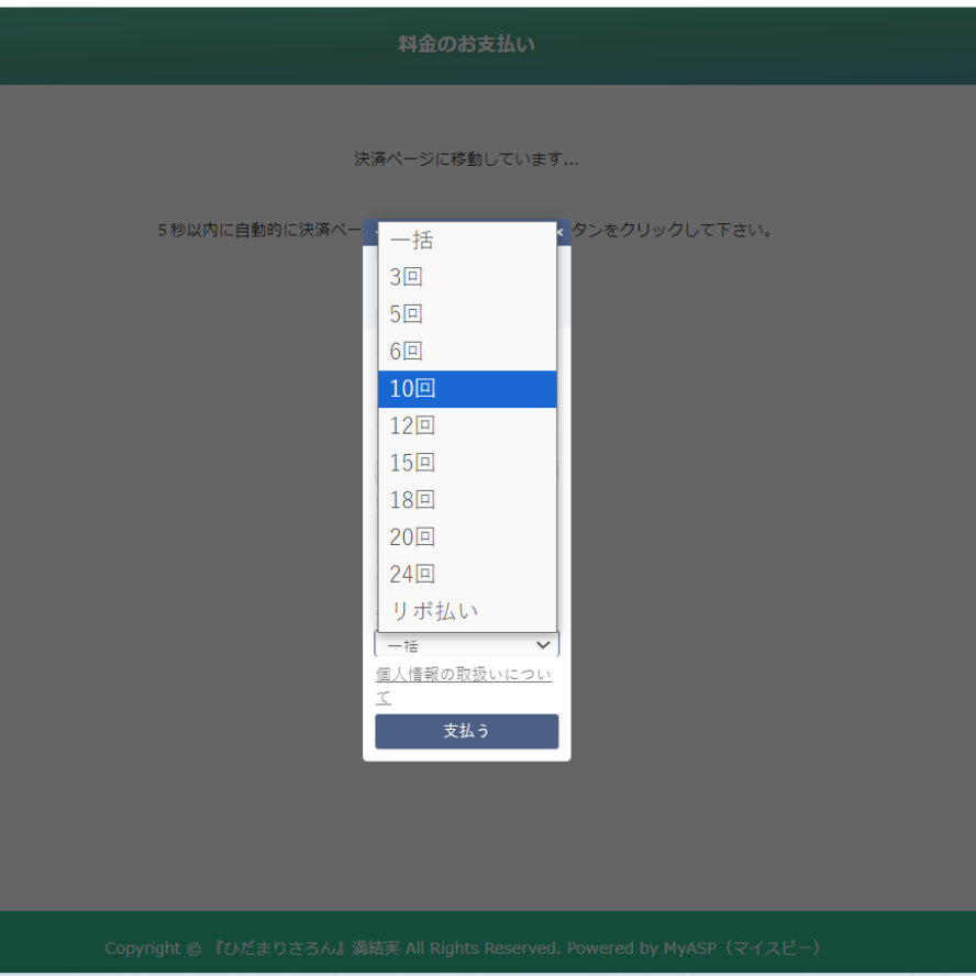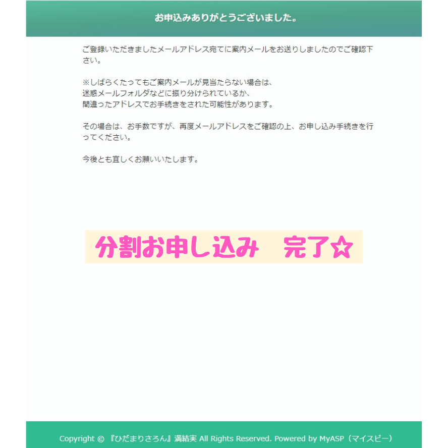 あなたがお申し込みフォームで選択した回数の分割払いでのお申し込みが完了しています。