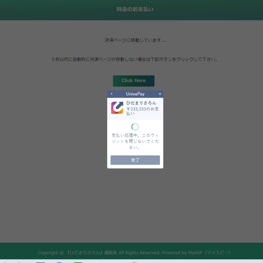7.支払い処理中の画面が出ます。クレジットカードの決済処理中です。しばらくお待ちください。