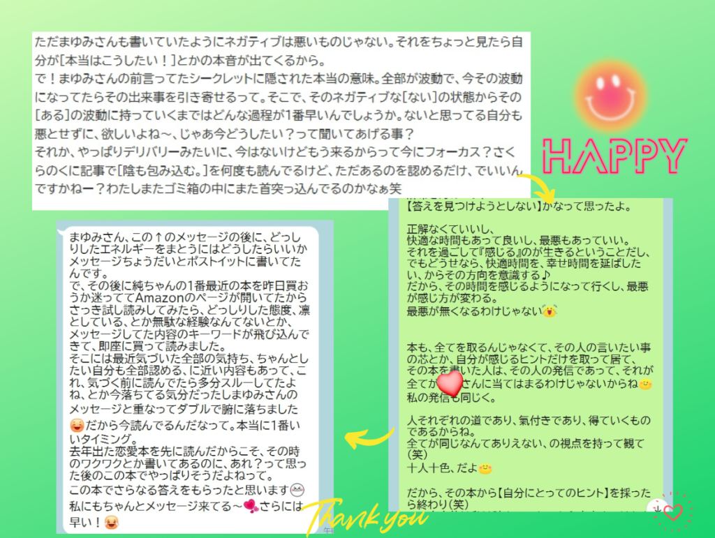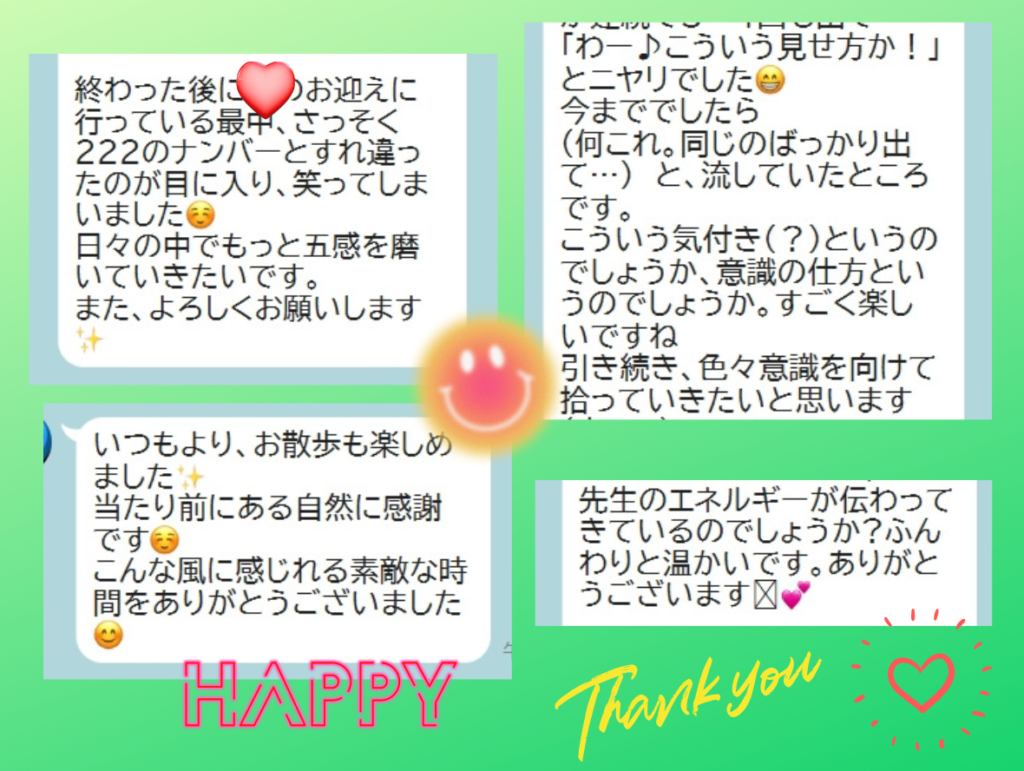 15分ほど眠ってしまい、目が覚めた時に頭の中がスッキリクリアになっていて、体が細かい泡で、すっぽり包まれてるような感じ、掌や足の裏の中心が熱くジワジワは長く続いています。これから、どんな変化やシンクロが体験できるか、とても楽しみです。